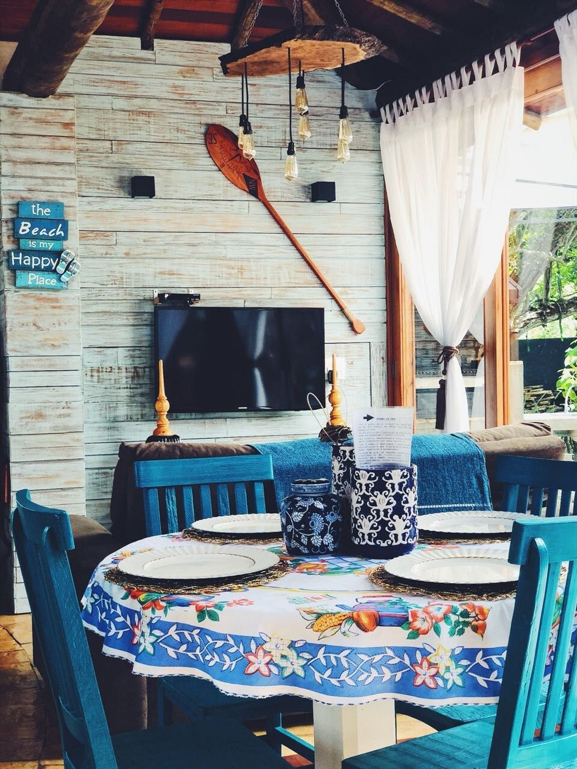 Beautiful house with swimming pool surrounded by native forest with swimming pool, ideal for relaxing and enjoying with the family, consisting of 3 bedrooms, 1 suite with dressing room on the upper floor with TV and two bedrooms on the ground floor, bathroom, living room/TV, kitchen American, barbecue area with pizza oven, balconies, hammock to relax.. It has quick and practical access to Ferradura beach, which is only 150.00 meters away. The house is fully equipped with bed and bath linen. WIFI
