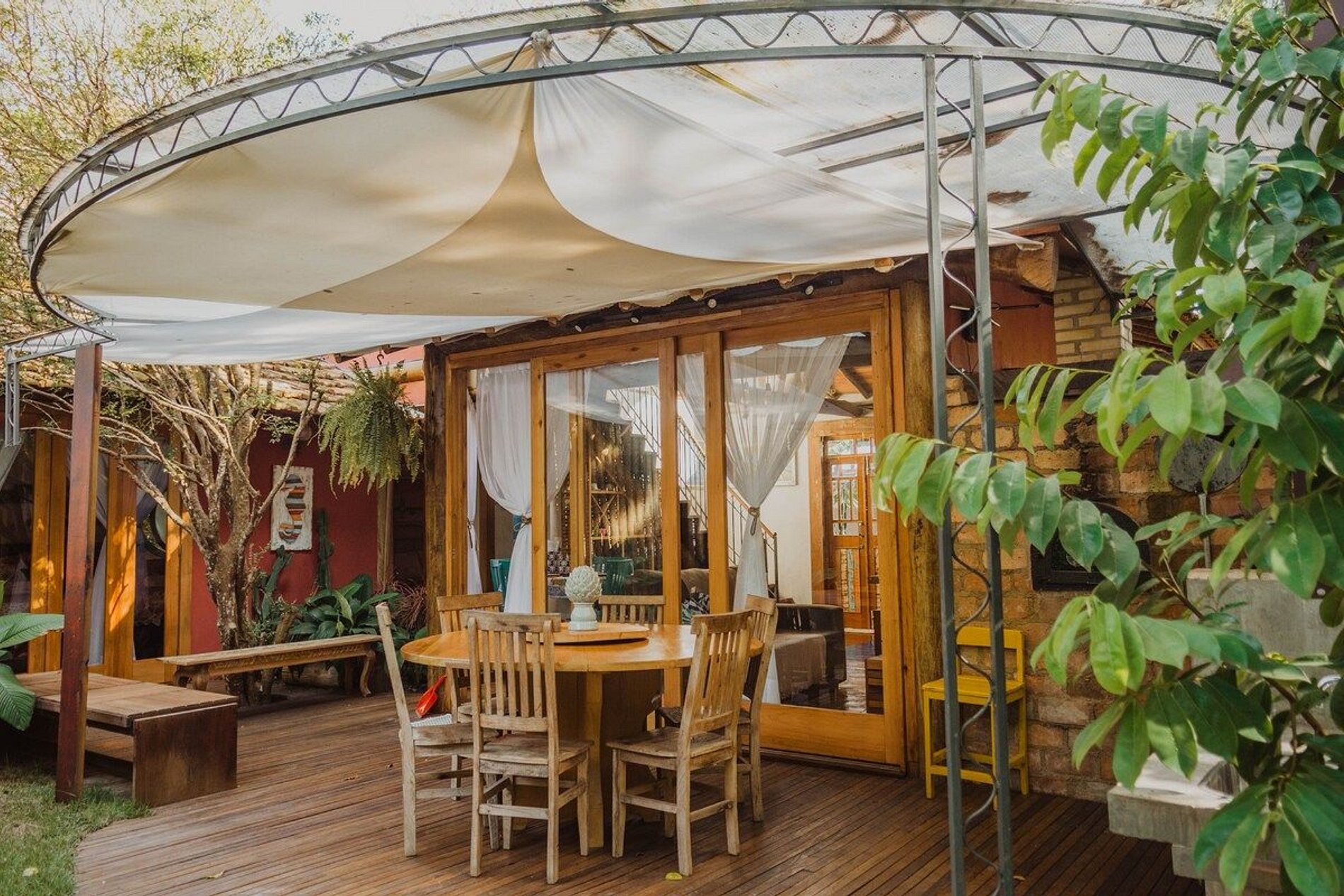 Beautiful house with pool surrounded by native forest with a pool ideal for relaxing and enjoying with the family, consisting of 3 bedrooms, 1 suite with dressing room on the upper floor and two bedrooms on the ground floor, bathroom, living room/TV, American kitchen, dining area barbecue with pizza oven, deck area to relax around the pool.