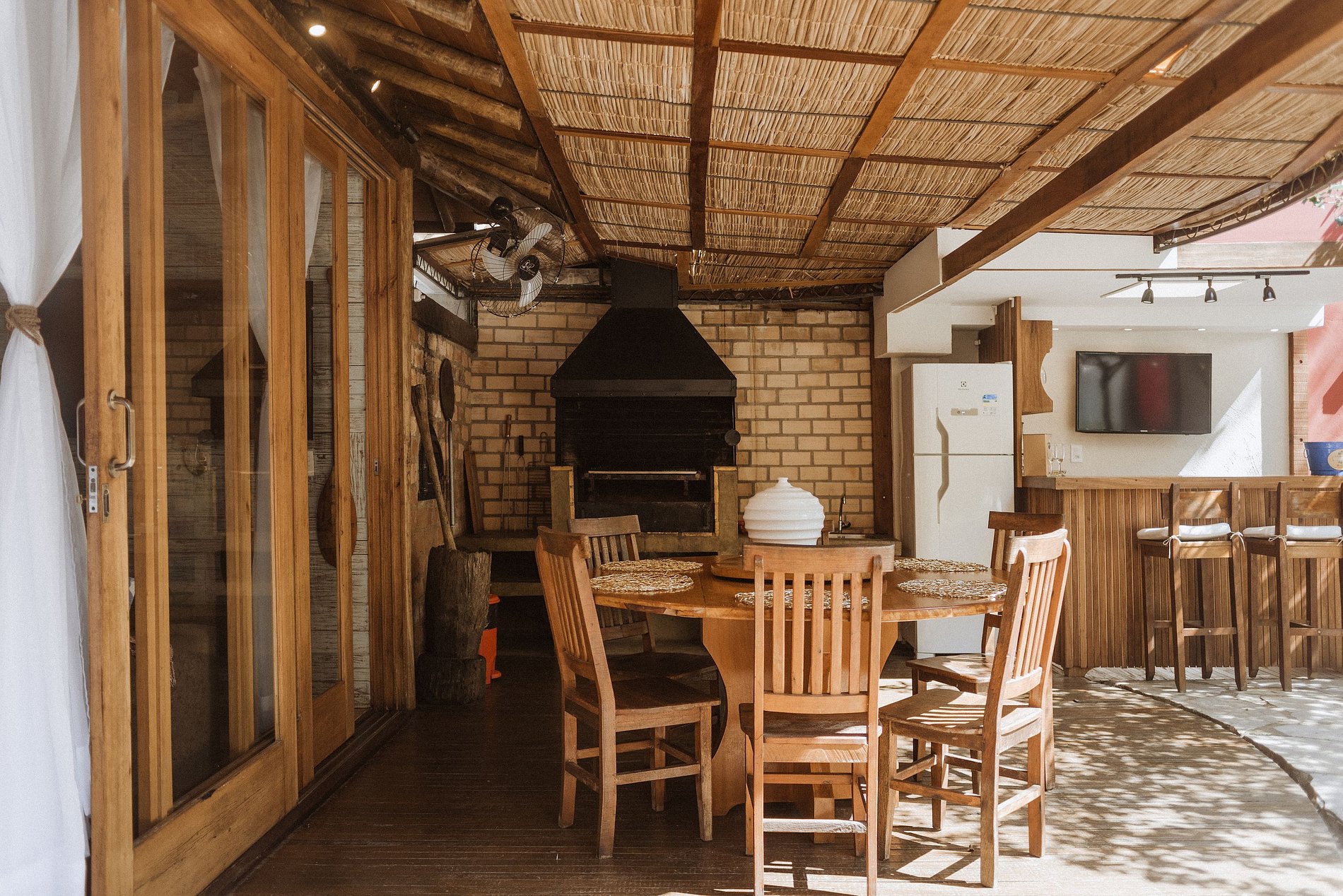 Beautiful house with pool surrounded by native forest with a pool ideal for relaxing and enjoying with the family, consisting of 3 bedrooms, 1 suite with dressing room on the upper floor and two bedrooms on the ground floor, bathroom, living room/TV, American kitchen, dining area barbecue with pizza oven, deck area to relax around the pool.